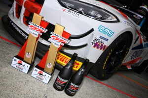 ポールポジションからスタートした加納選手は完璧なスタートで序盤にGT3 をもオーバーテイク。後半織戸選手はスティントも全く危なげない走りで周回を重ね、そのままチェッカー。